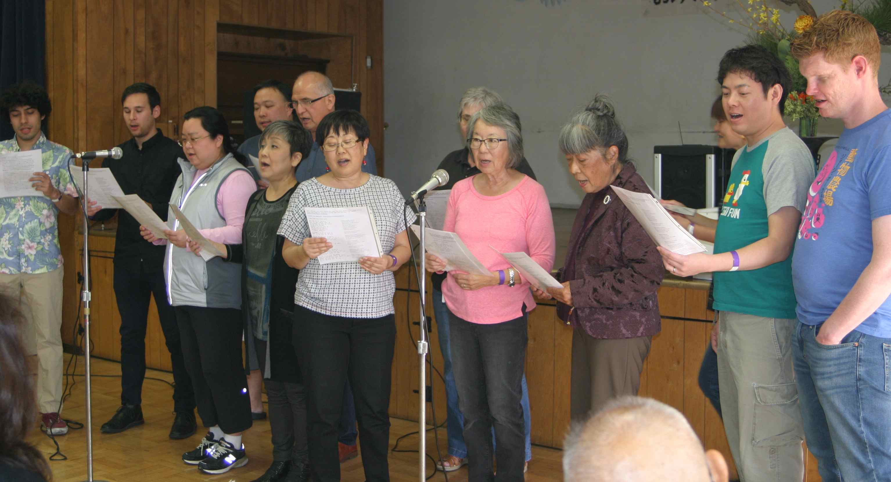 Entertainment was also provided by the Long Beach Japanese Language School high school and adult classes (pictured), who sang “Sakura” and “The Mothers Song,” and Masako Fukuhara, Izumi Minamitani and Hiroko Ishiguro, who sang “Ichigatsu Tsuitachi” (New Year’s Song).
