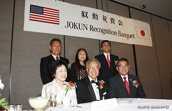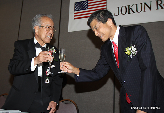 両者に勲章を伝達した新美潤総領事が祝辞を述べ、各人の業績を「日米関係の促進に大きく貢献した」などとたたえ、さらなる活躍に期待を寄せた。南加日商の青木義男会頭は「南加の日系社会に功績を残した受勲者2人に、地域社会を代表してお祝いを述べたい。今後は、後進の育成に情熱を注いでもらいたい」と期待を寄せた。【永田潤、写真も】
